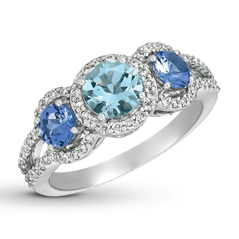 Aquamarine & Tanzanite Ring 1/3 ct tw Diamonds 14K Gold
