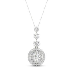 “Mommy” is decorated with sparkling round diamonds and a heart in this adorable necklace for her. Crafted of sterling silver, the 17-inch necklace has a total diamond weight of 1/6 carat. The cable chain fastens with a lobster clasp.
